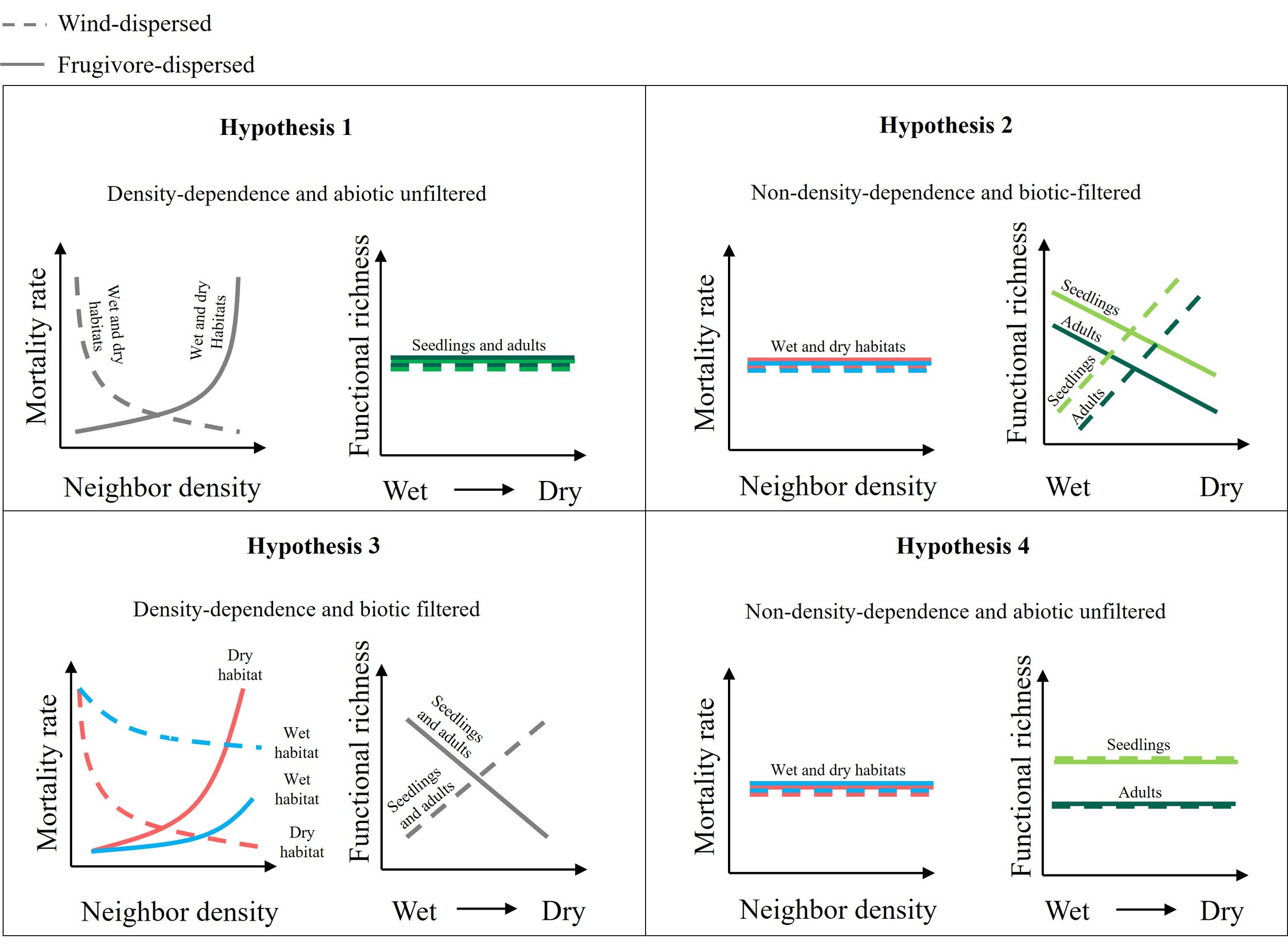 This finding now drives our investigation into the underlying mechanisms. I focus on niche partitioning, leveraging functional trait data, and examining density-dependent processes across multiple life stages to explain the observed dispersal group abundances.